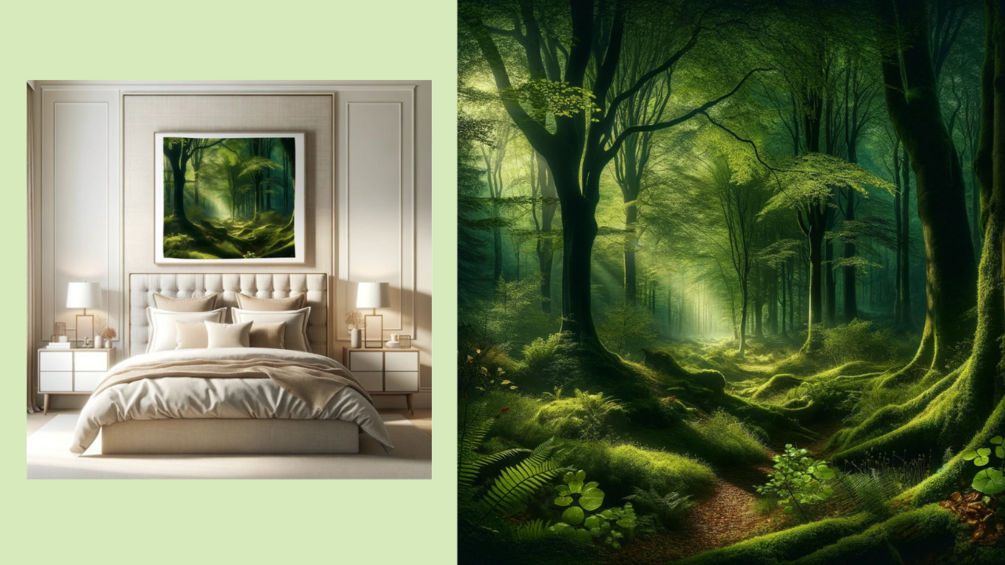 Forest Landscape Walks through Surrounded with Towering trees, Rich Textures of Lush Moss and Sunlight filtering through. Tranquil Forest Artwork, Forest Nature Landscape, Wall Art Download, Digital Art, Home Décor Wall Art.
